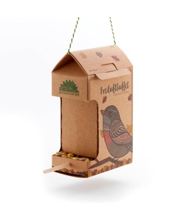 Ofrece a las aves de tu jardín un lugar acogedor donde puedan alimentarse y recuperar energías con este práctico kit listo para usar. El comedero, fabricado en cartón natural y respetuoso con el medio ambiente, incluye 200 g de alimento orgánico especialmente formulado para pájaros silvestres, con una mezcla equilibrada de semillas y granos. Su fórmula está diseñada para cubrir las necesidades nutricionales de estas aves, proporcionando una fuente de energía adecuada.