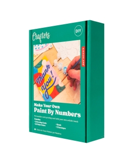Contenido del kit: 5 tarjetas para pintar por números, 24 pinturas acrílicas, 1 pincel y 5 sobres.