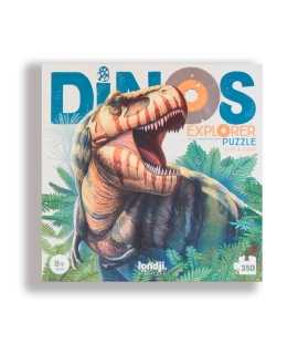 Un puzzle de 350 piezas y 3 discos de cartón para conocer mejor el mundo de los dinosaurios. Un juguete didáctico y sostenible hecho con cariño en Barcelona.