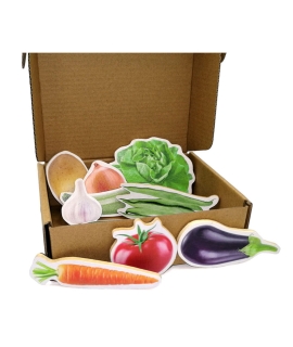 Perfectos para colocar sobre cualquier superficie metálica —como pizarras, frigoríficos o paneles de juego—, invitan a explorar, ampliar vocabulario y desarrollar la motricidad fina mientras los niños descubren los colores y formas de los vegetales.