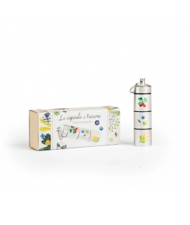 Pequeños exploradores, grandes hallazgos: este set de tres “cápsulas de tesoros” de la colección Moulin Roty es el compañero perfecto para recoger, guardar y descubrir los pequeños hallazgos de un paseo al aire libre. Las cápsulas cuentan con tres compartimentos internos, un diseño compacto y un práctico mosquetón para enganchar al cinturón o a la mochila.