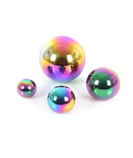 Porque ofrecen una experiencia sensorial completa: color, reflejo, peso y movimiento en un solo set. El acabado “arco iris” añade un toque lúdico y visual que atrae a los sentidos, mientras que su robustez y diseño permiten explorarlas durante meses. Una elección ideal para quienes buscan recursos educativos de calidad que conecten la curiosidad infantil con un juego pausado, consciente y lleno de descubrimiento.