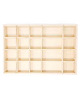 Esta bandeja con 20 compartimentos de diferentes medidas permite ofrecer una gran variedad de materiales a la vez. Los compartimentos acogen, contienen y limitan, permitiendo a los niños ordenar y clasificar todos esos tesoros pequeños que son parte de su entorno.
