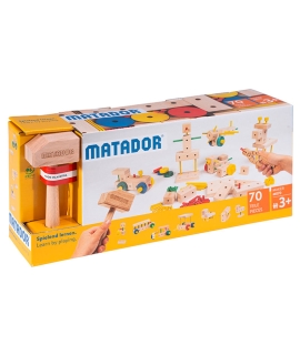 Gracias al sistema original de Matador, basado en bloques de madera perforados y pasadores de unión, las piezas encajan con precisión y ofrecen una estructura sólida, ideal para construir, desmontar y volver a crear sin límites.