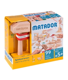 Gracias al sistema original de Matador, basado en bloques de madera perforados y pasadores de unión, las piezas encajan con precisión y ofrecen una estructura sólida, ideal para construir, desmontar y volver a crear sin límites.