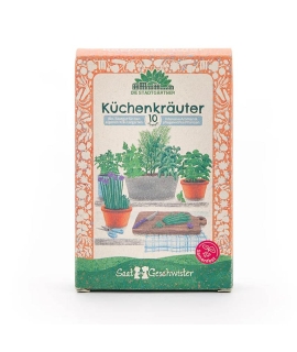 El set contiene 10 variedades seleccionadas de hierbas culinarias en calidad orgánica (EU‑BIO) como basílico, eneldo, perejil y tomillo, perfectas para dar un toque aromático a ensaladas, salsas y comidas diarias.