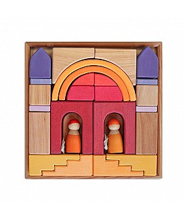 Perfectamente incompleto, este juego de construcción te invita a jugar con tu imaginación y experimentar. Los ricos tonos amarillos, naranjas y rojos mezclados con madera natural le dan al juguete una profunda calidez mientras conservan el tacto rugoso de este noble material.
