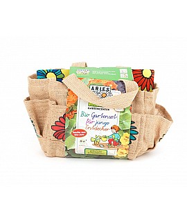 Todo el material viene en una práctica bolsa de yute orgánico para guardar y transportar tus utensilios de jardinero.