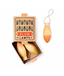 La caja Nº4 contiene 3 figuras pintadas a mano con forma de bombilla (incluye hilo para colgar).