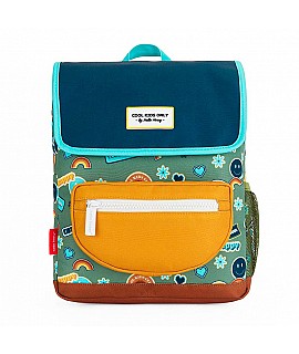 Mochila infantil con un diseño funcional y colorista, fabricada con poliéster 100% reciclado certificado OEKO-TEX, un tejido sostenible, muy resistente y fácil de limpiar. El tamaño es perfecto para llevar todo lo necesario a la escuela pero también para utilizarla como maleta de fin de semana.
