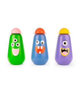 El diseño del envase, inspirado en un simpático monstruo, resulta encantador para los más pequeños y cómodo para las manos infantiles. Incluye el clásico aro con mango para soplar burbujas con facilidad y sorprender a todos con una nube de pompas que flotan en el aire.