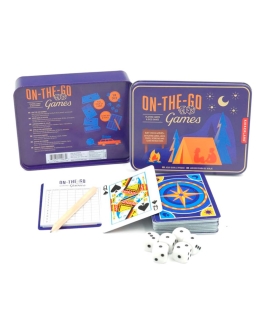 Diviértete en cualquier lugar con esta caja de Juegos Portátil "On‑The‑Go Games" de Kikkerland, un kit compacto en lata metálica ideal para viajes, campamentos o tiempos de espera. Incluye lo esencial para jugar en grupo y mantener la mente activa allá donde vayas.